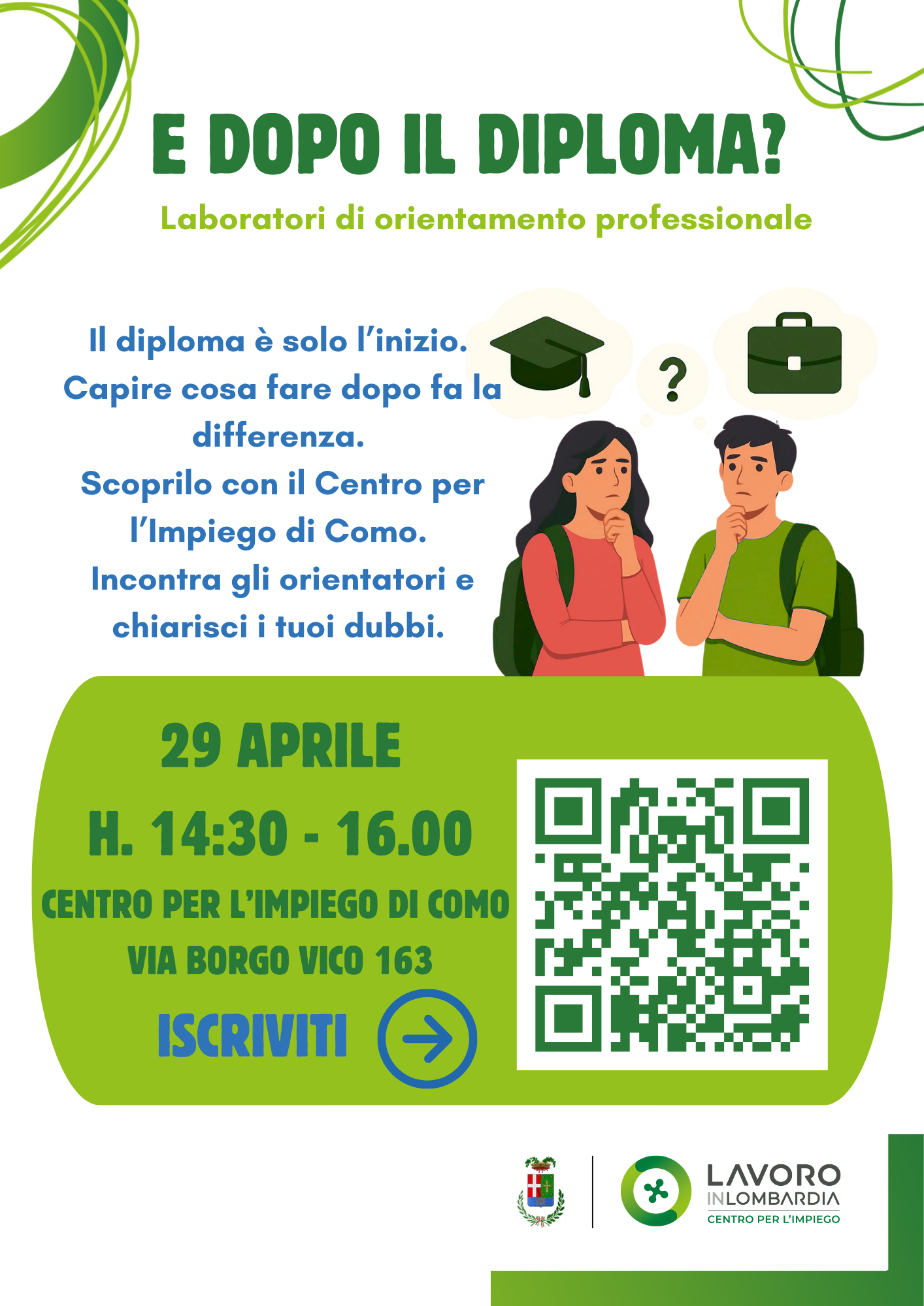 Il diploma rappresenta un traguardo importante, ma anche l’inizio di nuove scelte. Per supportare studentesse e studenti nel definire il proprio percorso dopo la scuola, il Centro per l’Impiego di Como organizza un laboratorio di orientamento professionale dedicato a chi si sta chiedendo “e adesso cosa faccio?”.