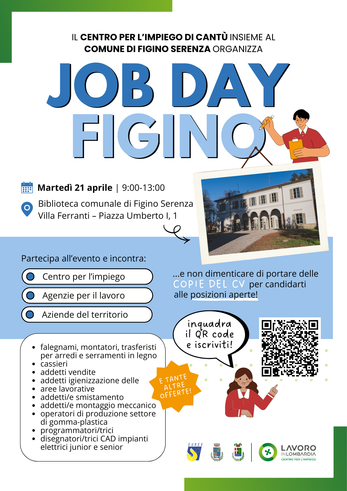 Il Centro per l'Impiego di Cantù, in collaborazione con il Comune di Figino Serenza, organizza una giornata dedicata all'incontro tra domanda e offerta di lavoro.